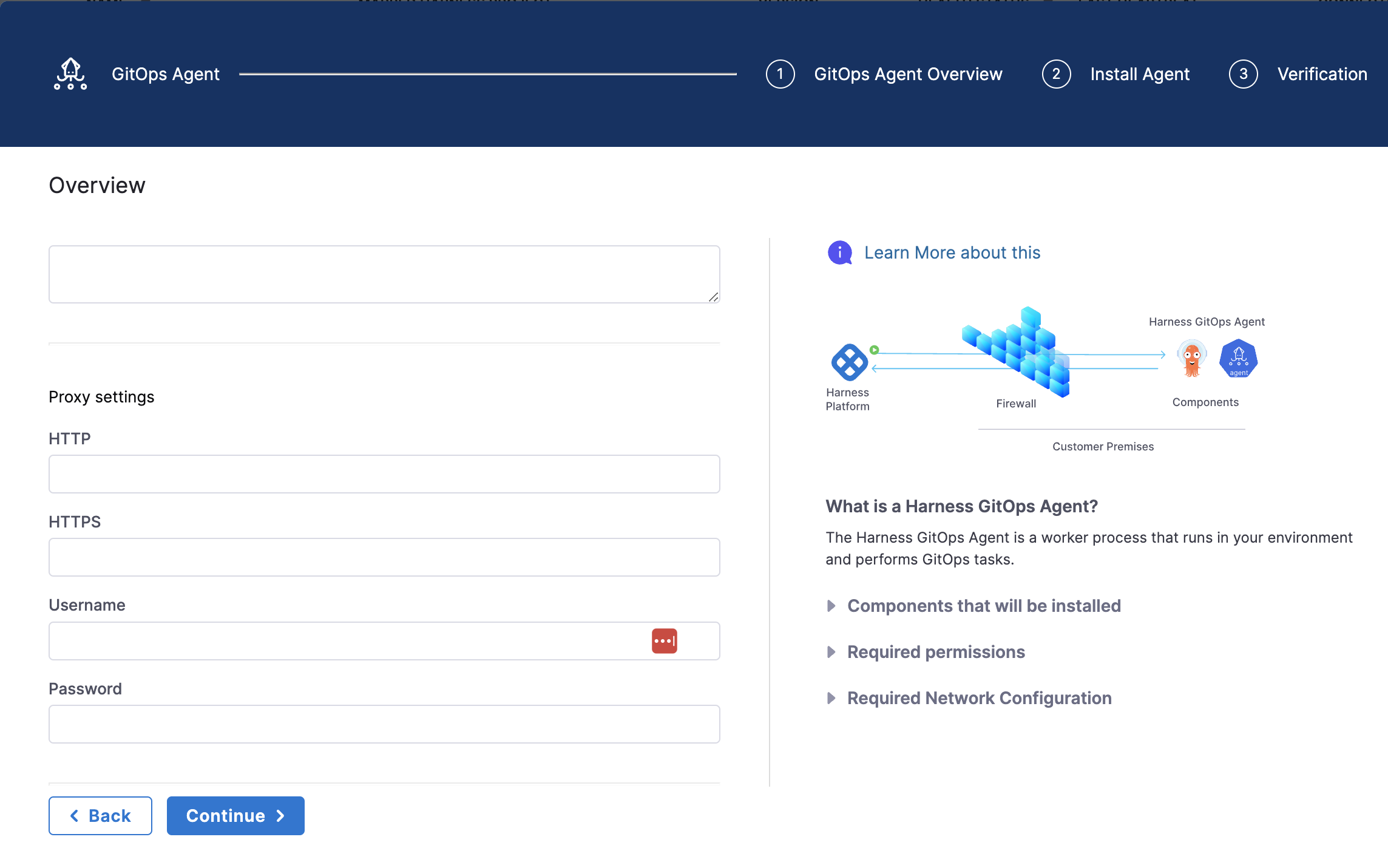 For the example in this topic, a regular Harness GitOps agent is created without an existing Argo CD instance (non-BYOA setup). For creating a BYOA setup (with an existing Argo CD installation), please refer to Bring Your Own Argo CD into Harness GitOps