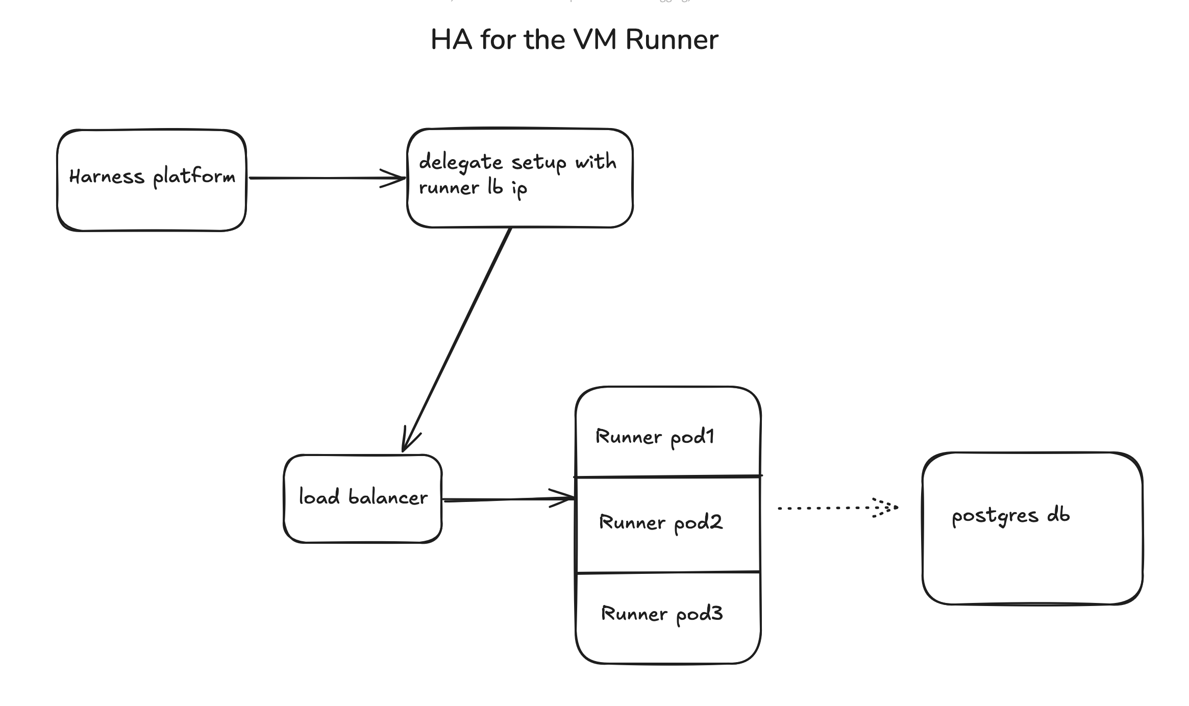 When using VM build infrastructure, you can deploy multiple replicas of the runner or infrastructure to ensure high availability. Below is an example of a deployment yaml that deploys 2 replicas of the runner behind a load balancer.