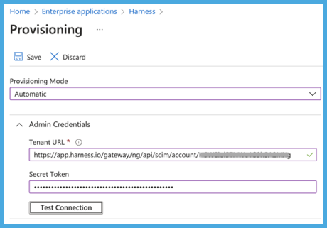 2. Select Test Connection to ensure that Microsoft Entra ID can connect to Harness. If the connection fails, make sure your API key has admin permissions, and then try again.