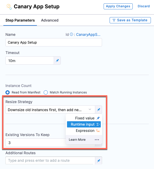 • The targetSize field in the Blue-Green Deploy step no longer defaults to 1. If not specified, Harness automatically fetches the current instance count from the stable MIG and applies it to the stage MIG. If an autoscaler is configured, the autoscaler controls the final instance count. Existing pipelines with an explicit targetSize value are not affected.