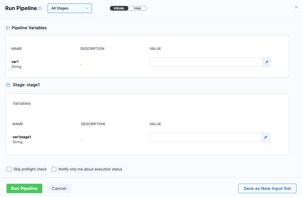 • Fixed an issue where executing a pipeline directly from an input set failed with a validation error for a required variable, even though the variable value was already populated. This was caused by an empty pipeline identifier being sent in the input set API call. (PIPE-32073, ZD-102863)